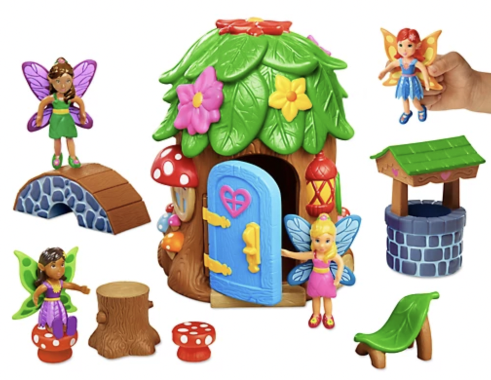 Mang vùng đất cổ tích mà bạn luôn tưởng tượng vào cuộc sống! Bộ đồ chơi bằng nhựa bền của chúng tôi bao gồm 4 nàng tiên có thể tạo dáng, cùng với mọi thứ bạn cần để khiến họ cảm thấy như ở nhà, bao gồm ngôi nhà có cửa xoay, ghế dài hình chiếc lá, giếng ước nguyện, bàn, 2 chiếc ghế đẩu hình nấm và cầu đi bộ . Ngôi nhà cổ tích cao 9".