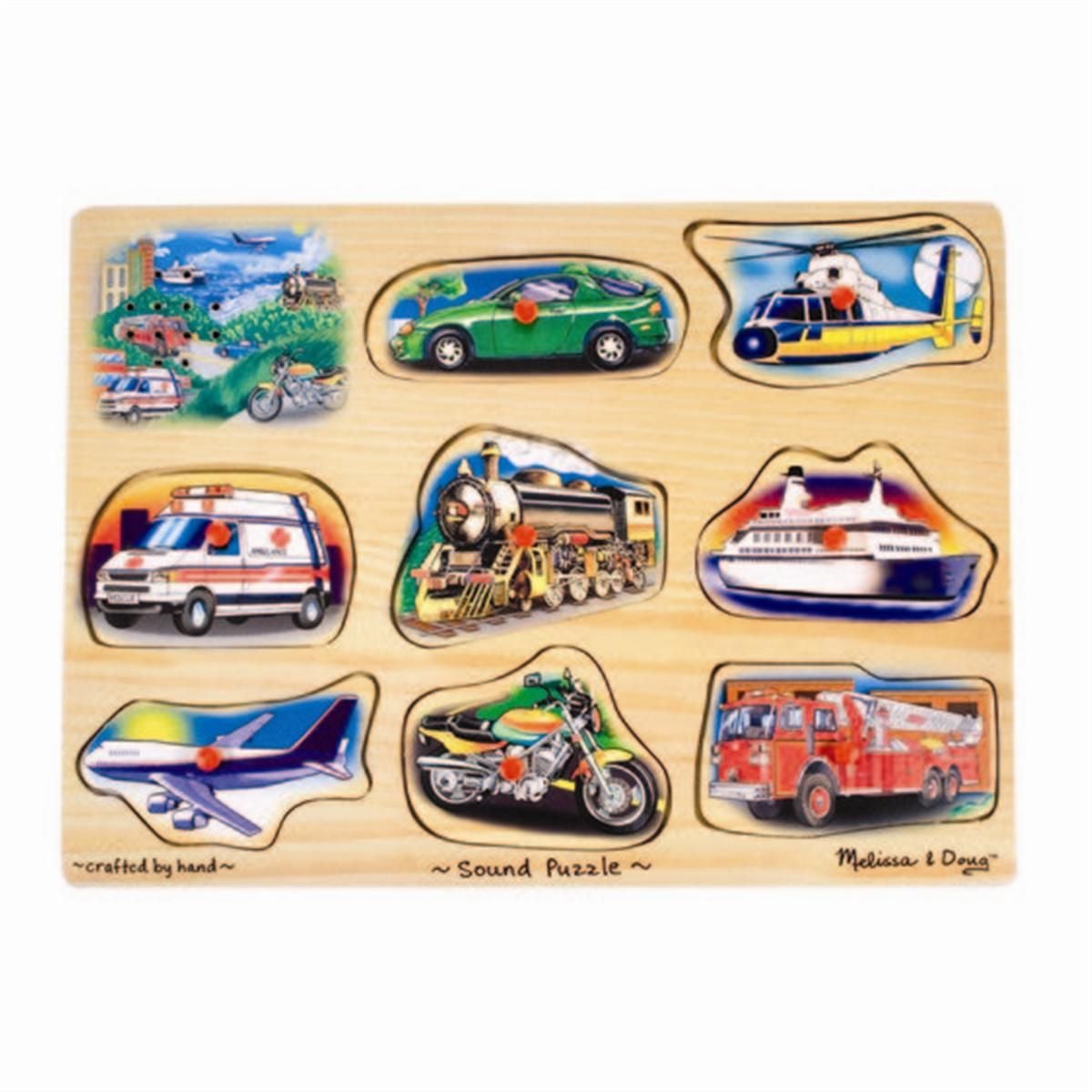 Với hình ảnh chi tiết về 8 loại xe cột ồn ào được yêu thích, bộ khung hình chốt gỗ này sẽ phát ra âm thanh khi một mảnh ghép được đặt đúng vị trí trên bảng ghép hình! Tổng cộng có tám âm thanh. Hình ảnh đầy màu sắc, match với từng mảnh ghép.