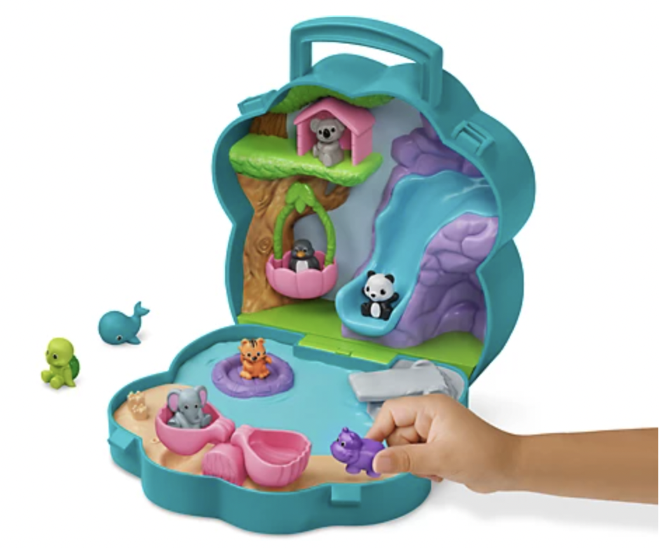 Mở ra một thế giới tưởng tượng—được tích hợp ngay trong hộp đựng hình bàn chân tiện dụng của chúng tôi! Bộ này có 6 khu vui chơi độc đáo, bao gồm đường trượt nước, nhà trên cây, bè và ván lặn, cùng với bập bênh và xích đu hoạt động như thật. Và bạn có 8 người bạn động vật đáng yêu, bao gồm hổ, chim cánh cụt, rùa, hà mã, gấu trúc, gấu túi, cá voi và voi—tất cả đã sẵn sàng cho hàng giờ phiêu lưu!