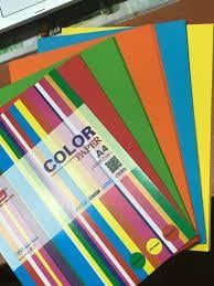 - Màu sắc: Trộn 5 màu xanh biển, xanh lá, vàng chanh, cam, đỏ vào 1 xấp 100 tờ (20 tờ/màu)