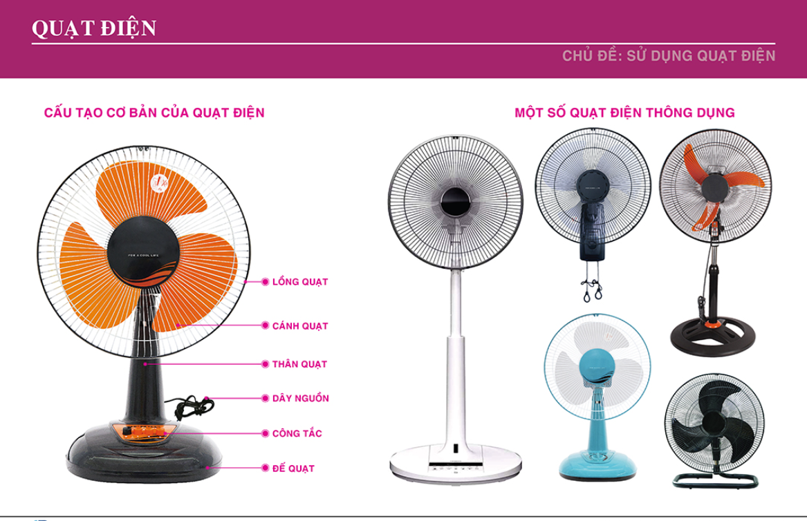 Minh hoạ cấu tạo cơ bản của quạt điện.